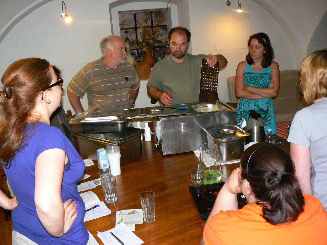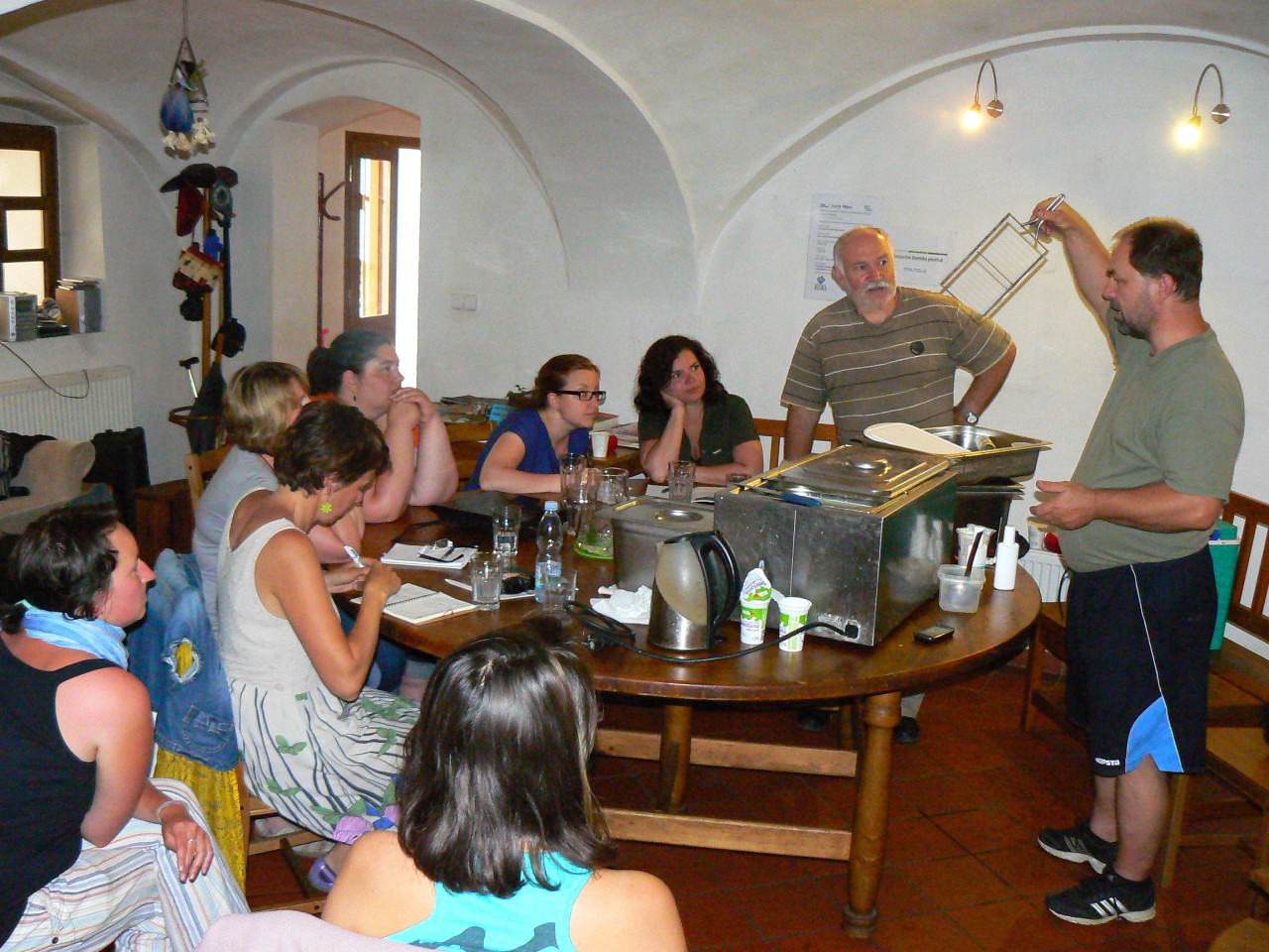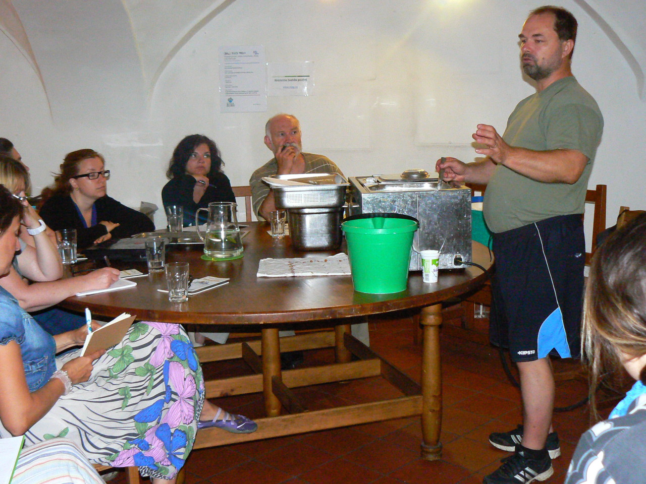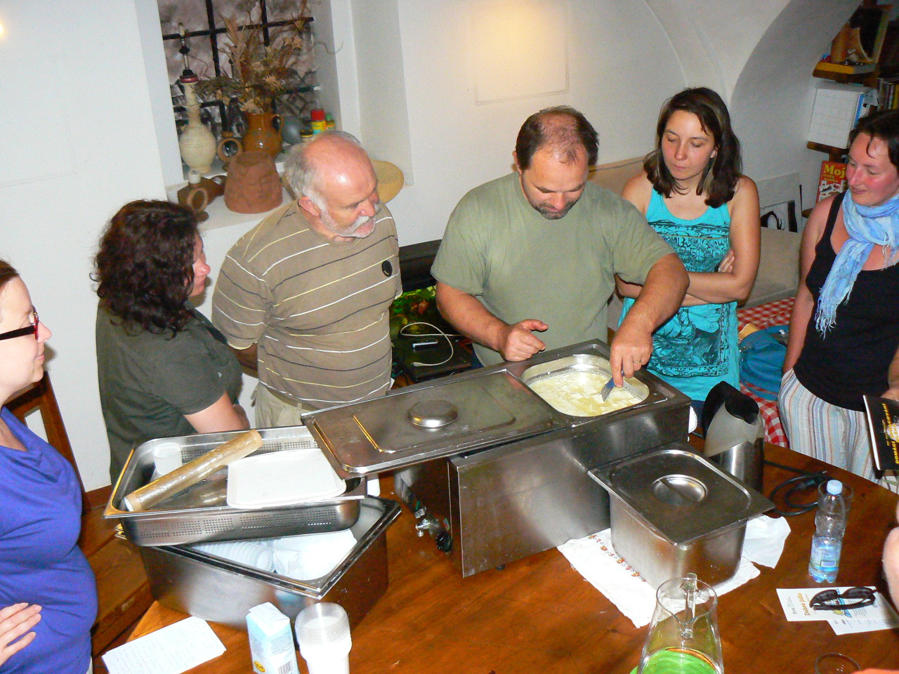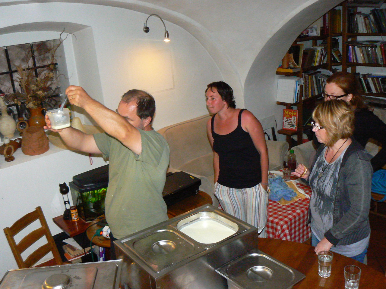 V červnu se účastníci kurzu zpracování mléka dozvěděli, jaké existují vychytávky pro snadnou výrobu domácího bílého jogurtu, přírodního sýra a tvarohu. Díky podrobnému výkladu plného osobních zkušeností pana lektora Petra Rubáše se krok za krokem naučili, jak při výrobě postupovat, na co si dát pozor, kde nakupovat suroviny, čeho se při práci vyvarovat. Protože se jednalo již o „zasvěcené“ zpracovatele, vyměnili si rady a typy i mezi sebou navzájem, jako bonus dostal každý účastník publikaci Domácí zpracování mléka.