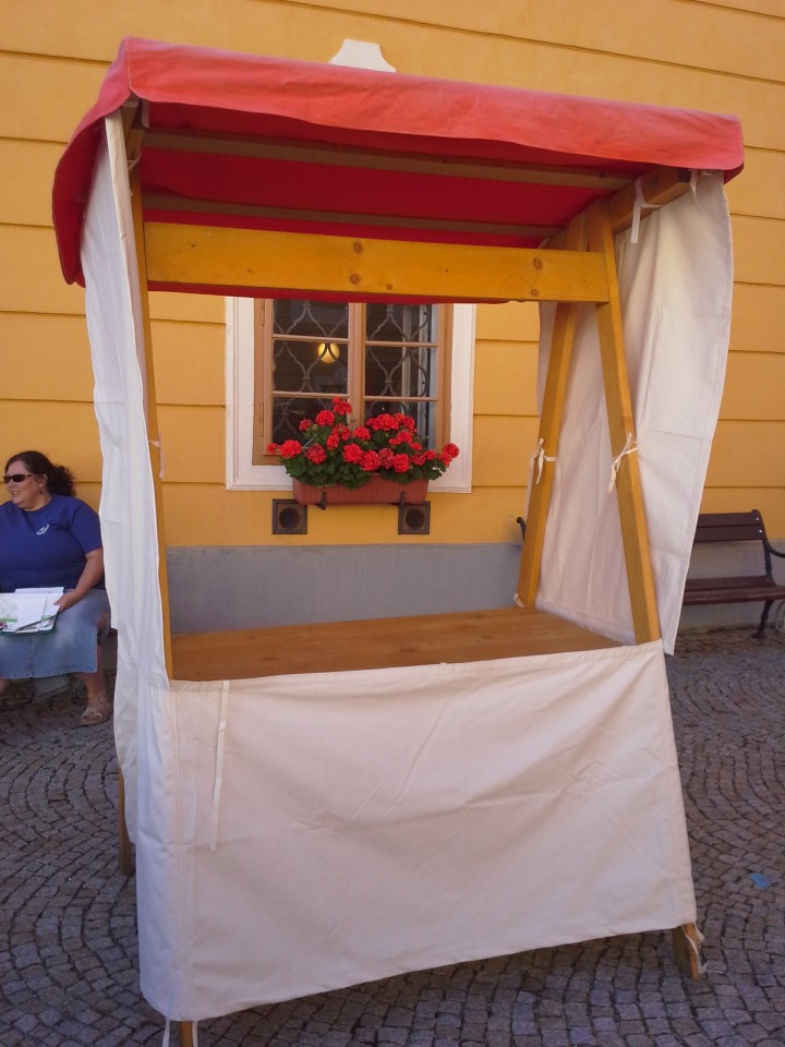 Dopravu nezajišťujeme. U stánků v rozloženém stavu jsou největší částí bočnice tvaru A – na výšku 210 cm, šířka základy 150 cm. Tomu je potřeba přizpůsobit velikost dopravního prostředku. Stánky jsou k předání v Českých Budějovicích poblíž vlakového nádraží.