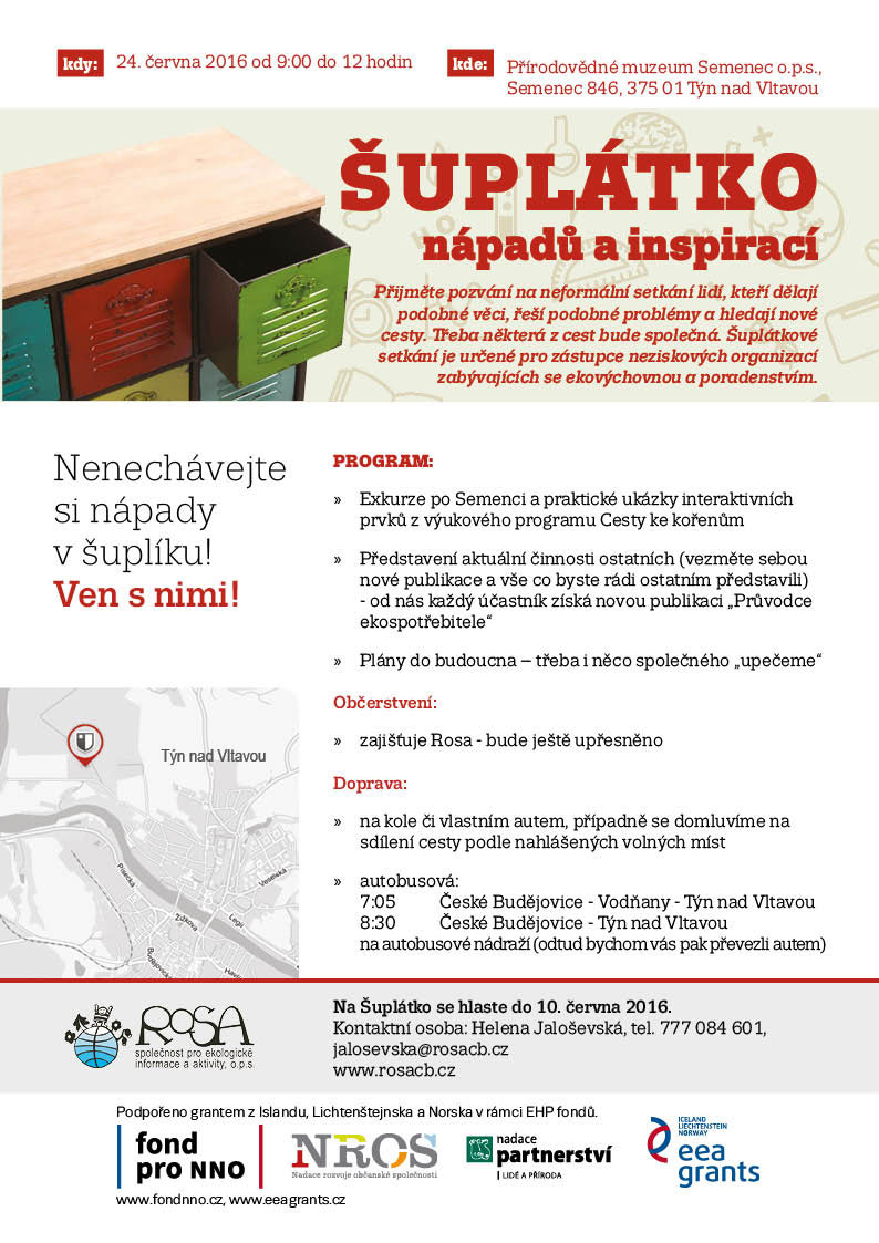 Šuplátka se zúčastnily organizace zabývající se ekologickou výchovou a poradenstvím nejen v Jihočeském kraji.